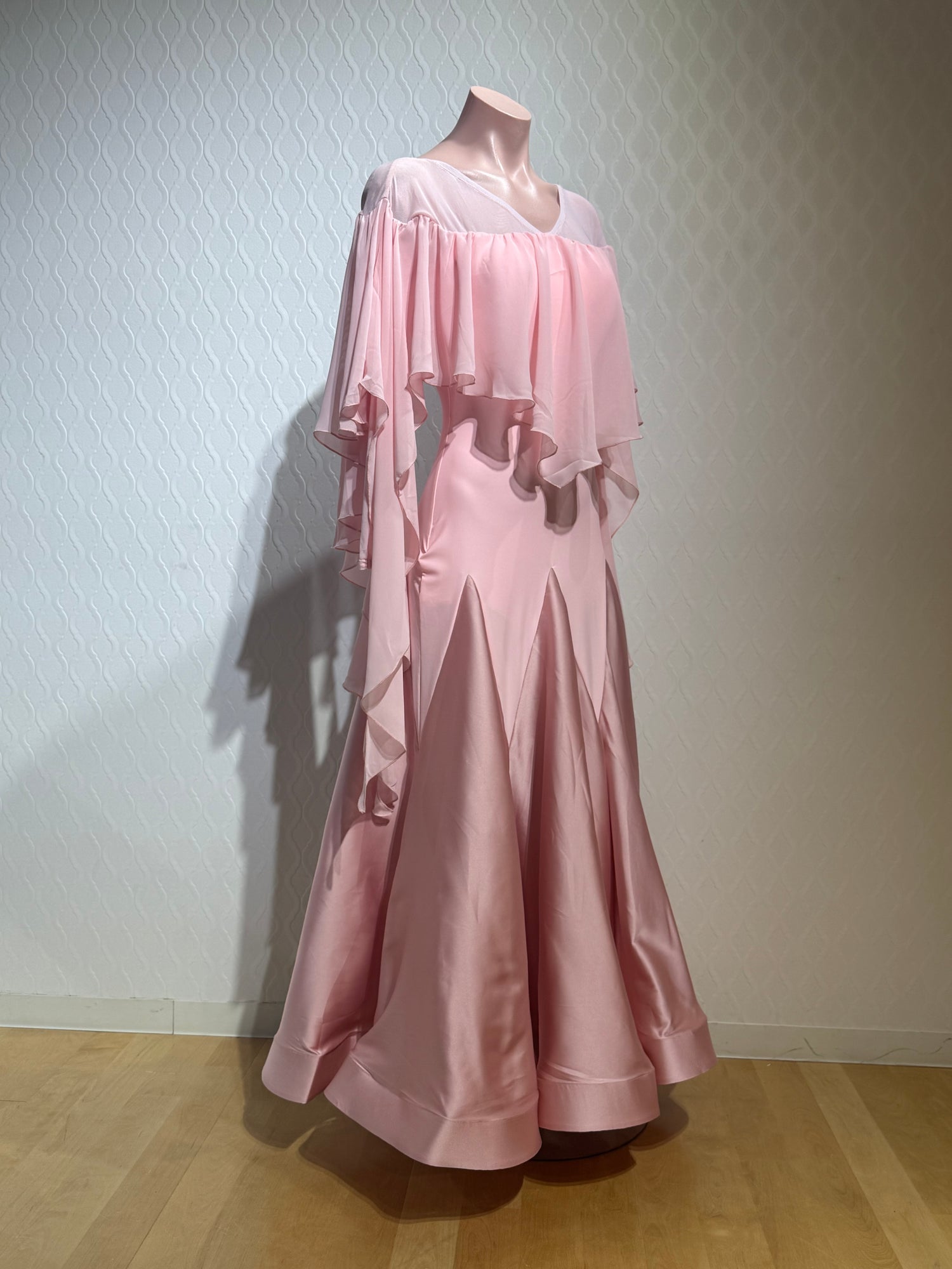 ふわりと棚引くフロートがボールルーム気分を盛り上げる華やかなワンピースです。