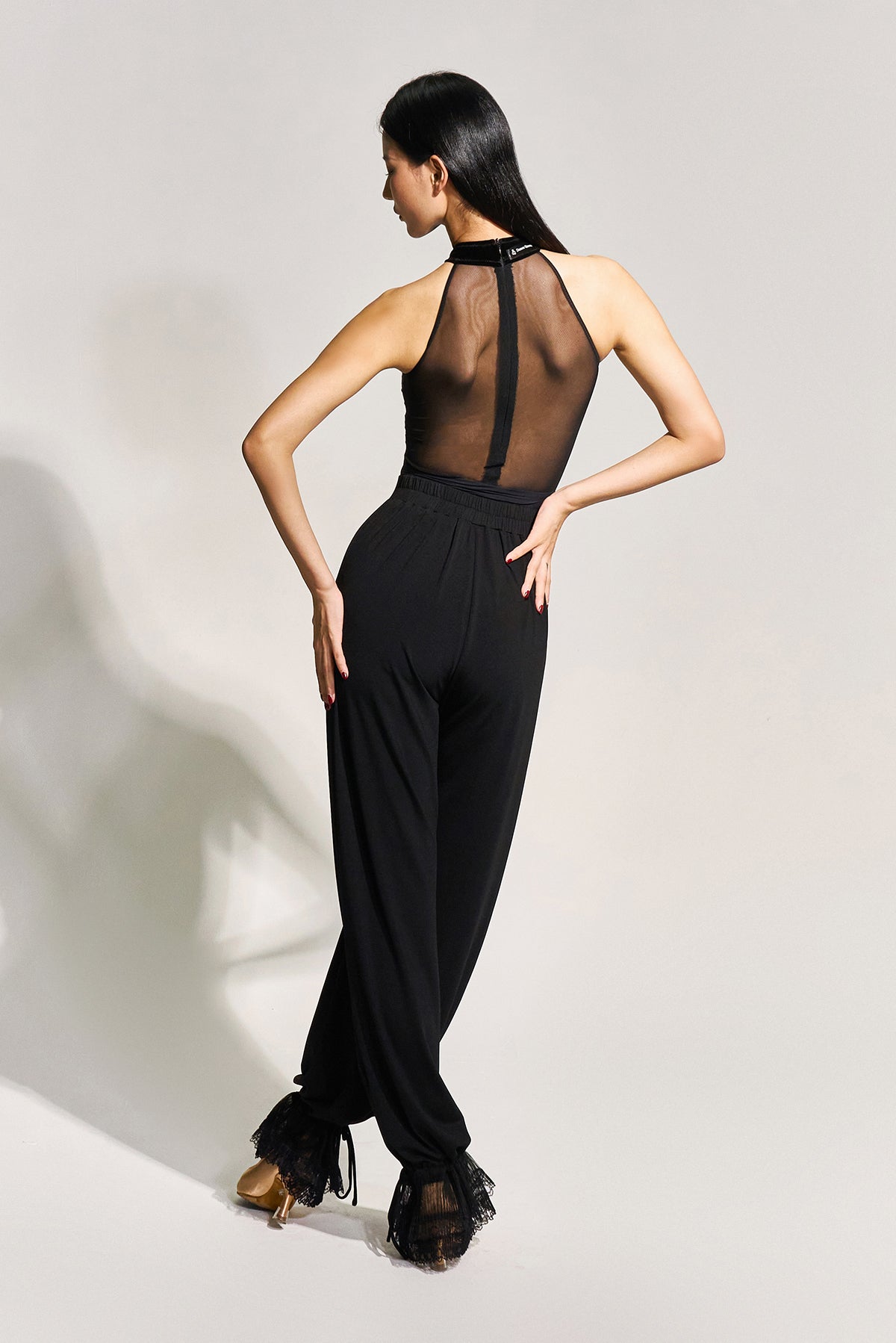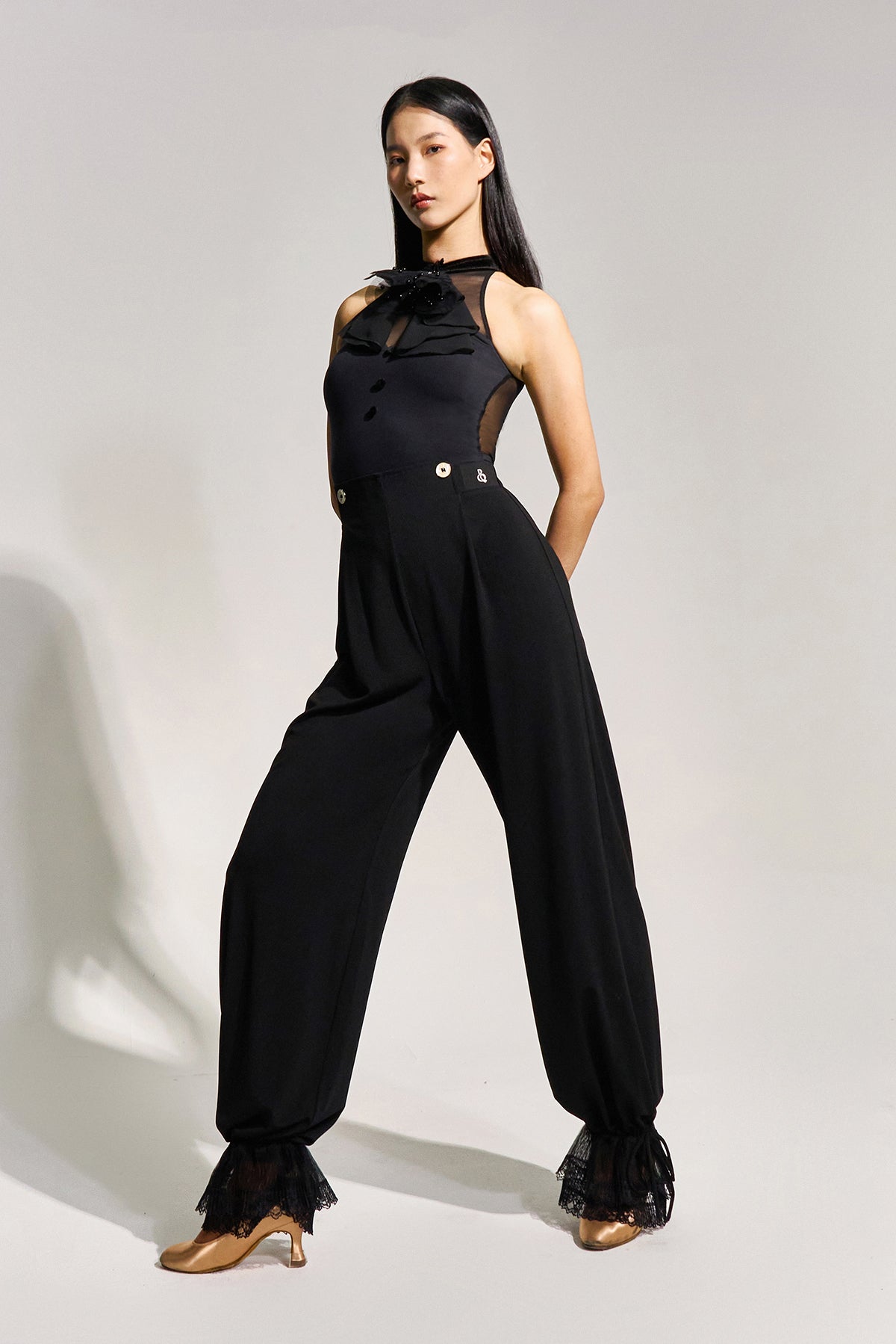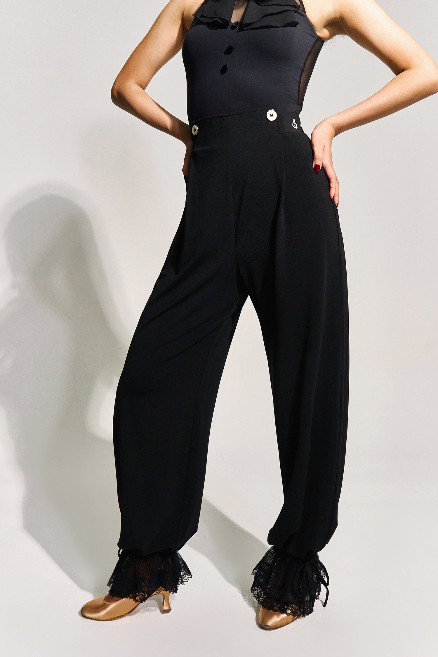 人気のダンスパンツにレースをあしらいました。