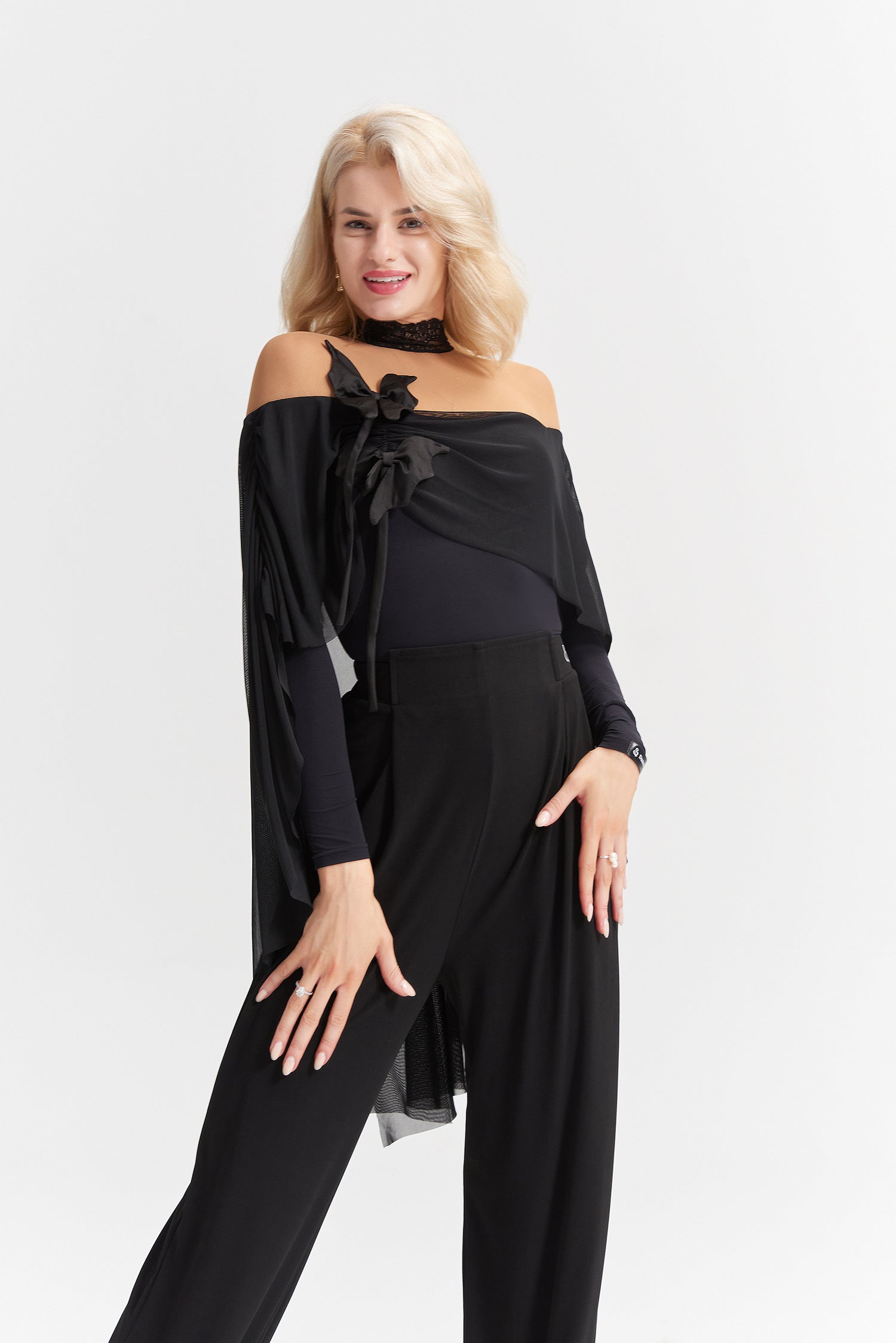 蝶のようなリボンモチーフが可愛らしい「オフショルダー見え」トップスです。