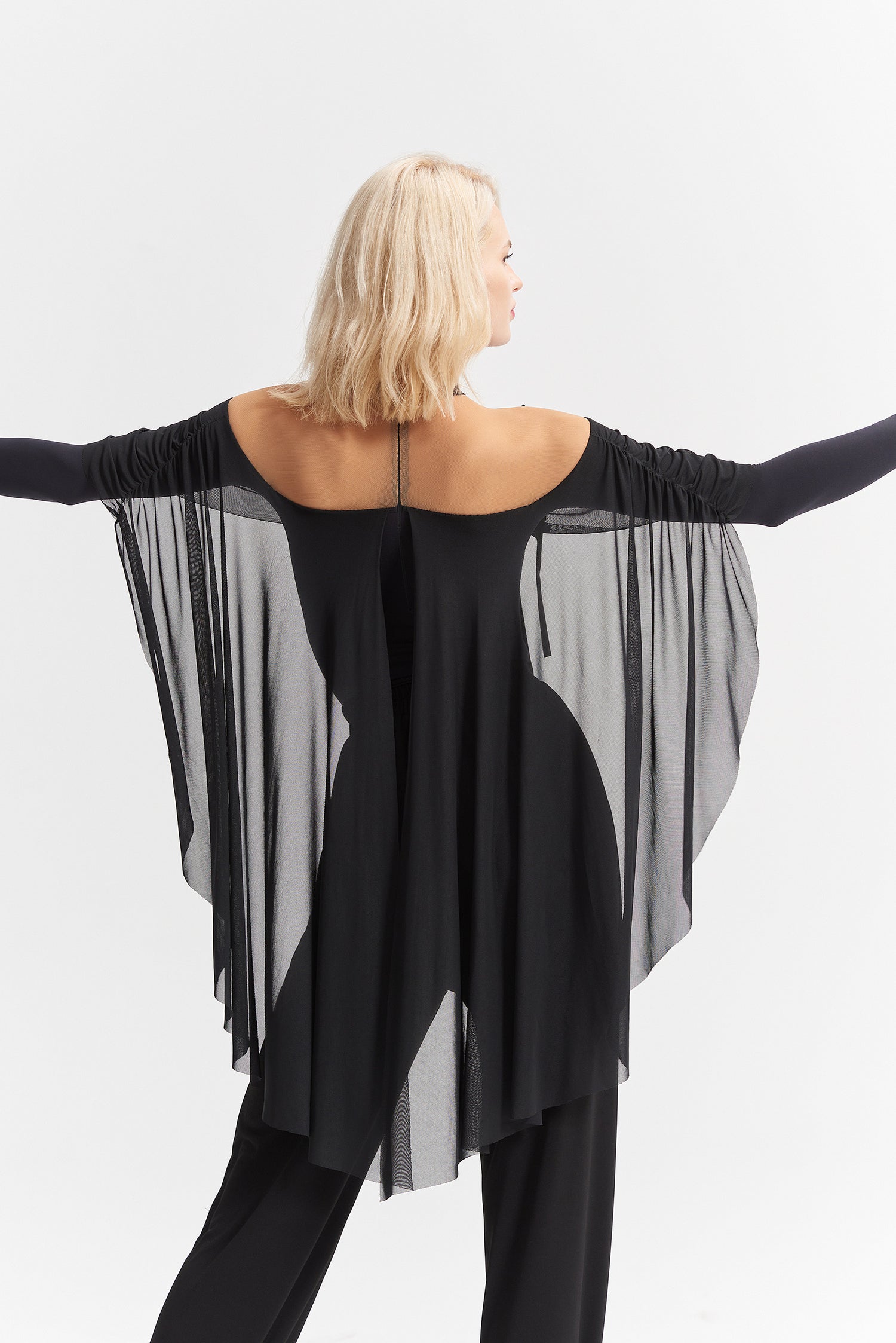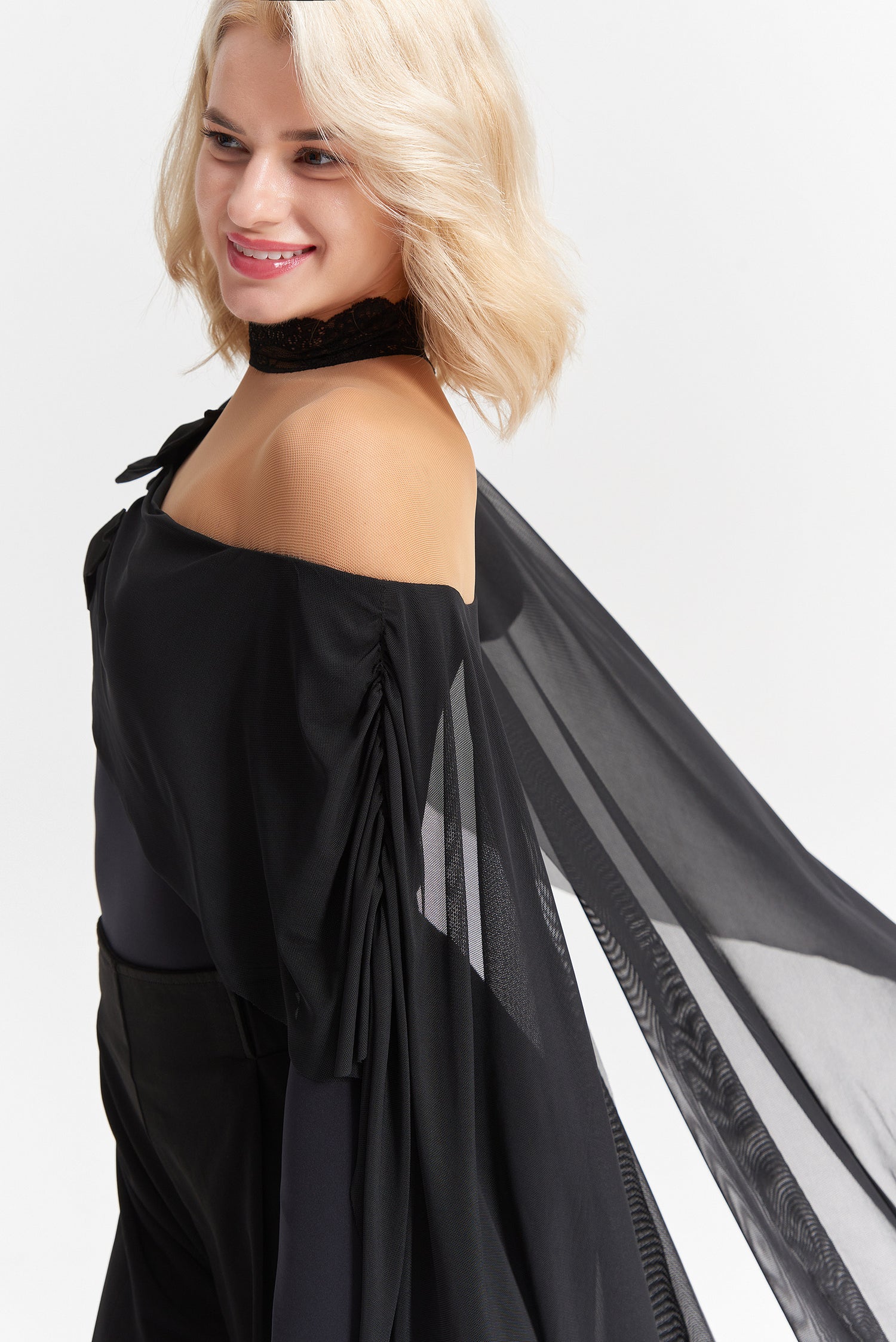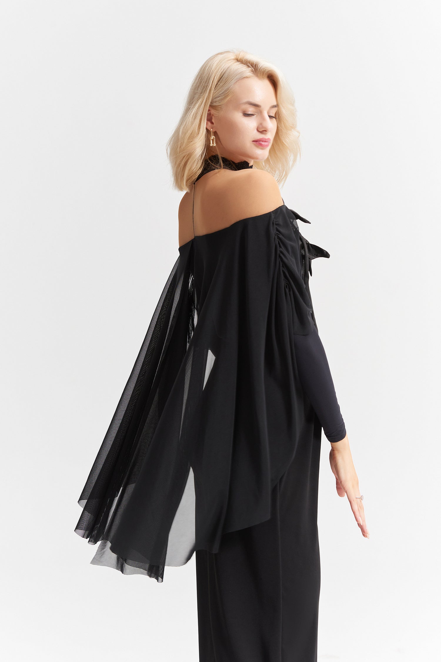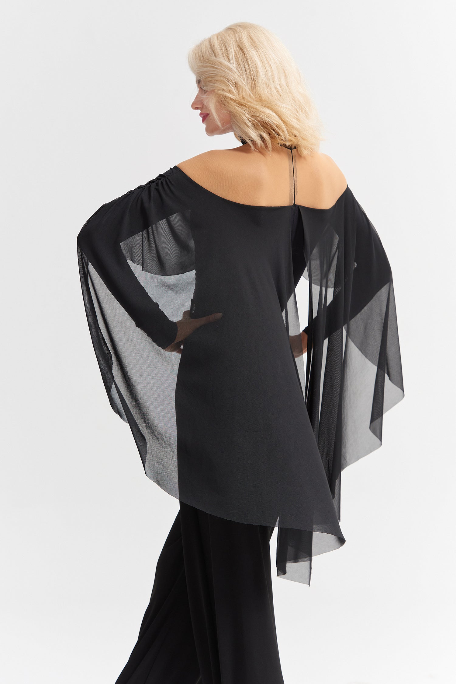 大胆なようでいて、デコルテにはナチュラルなスキンカラーの生地がございますので安心してお召しいただけます。