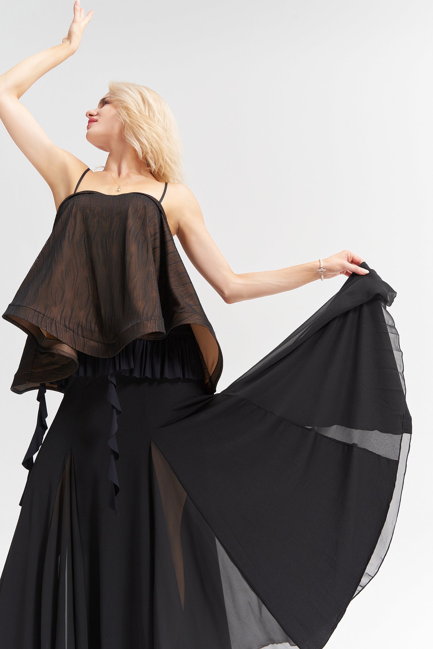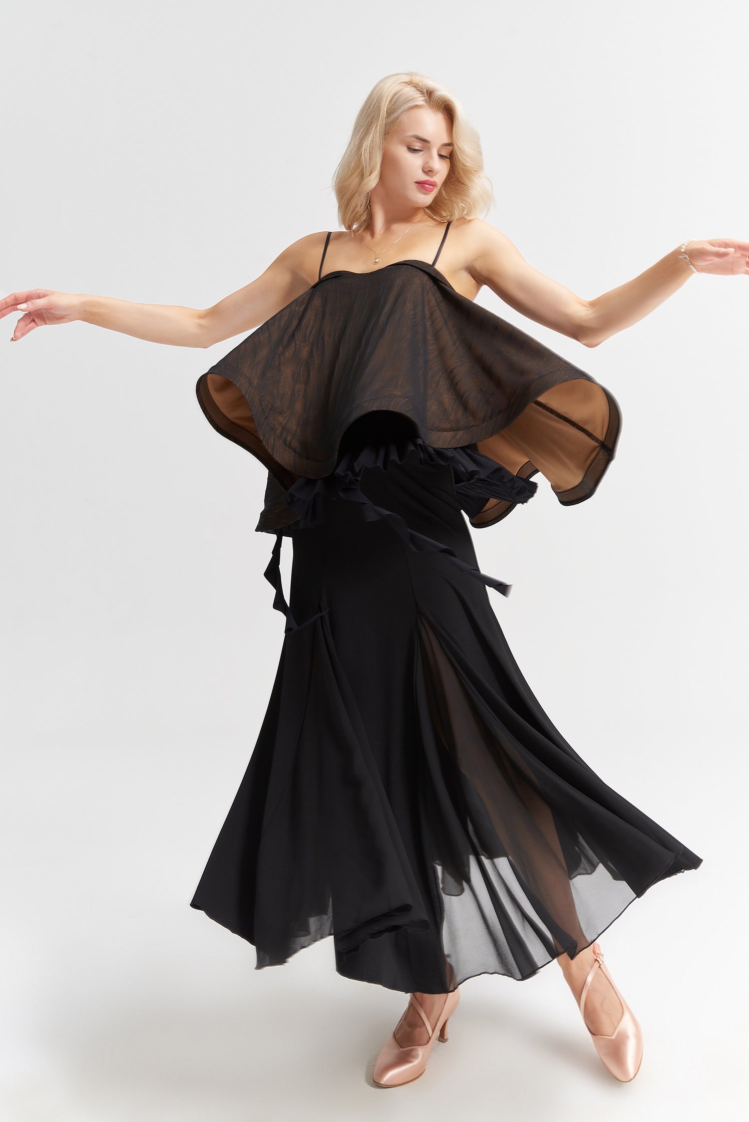 レッスン等で大活躍間違いなしのボールルームスカートです。定番型なので初めてのダンスウェアにもおすすめ!