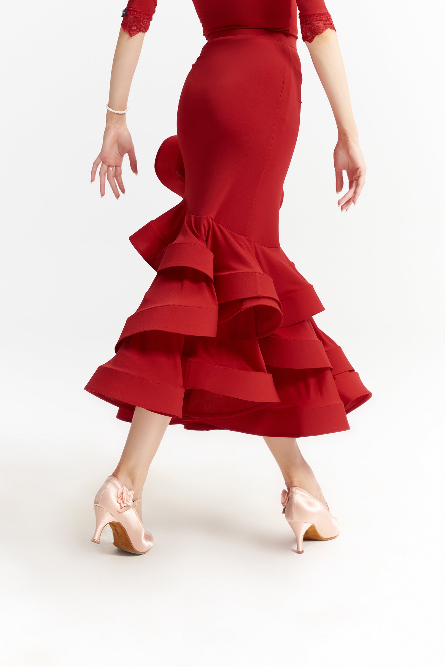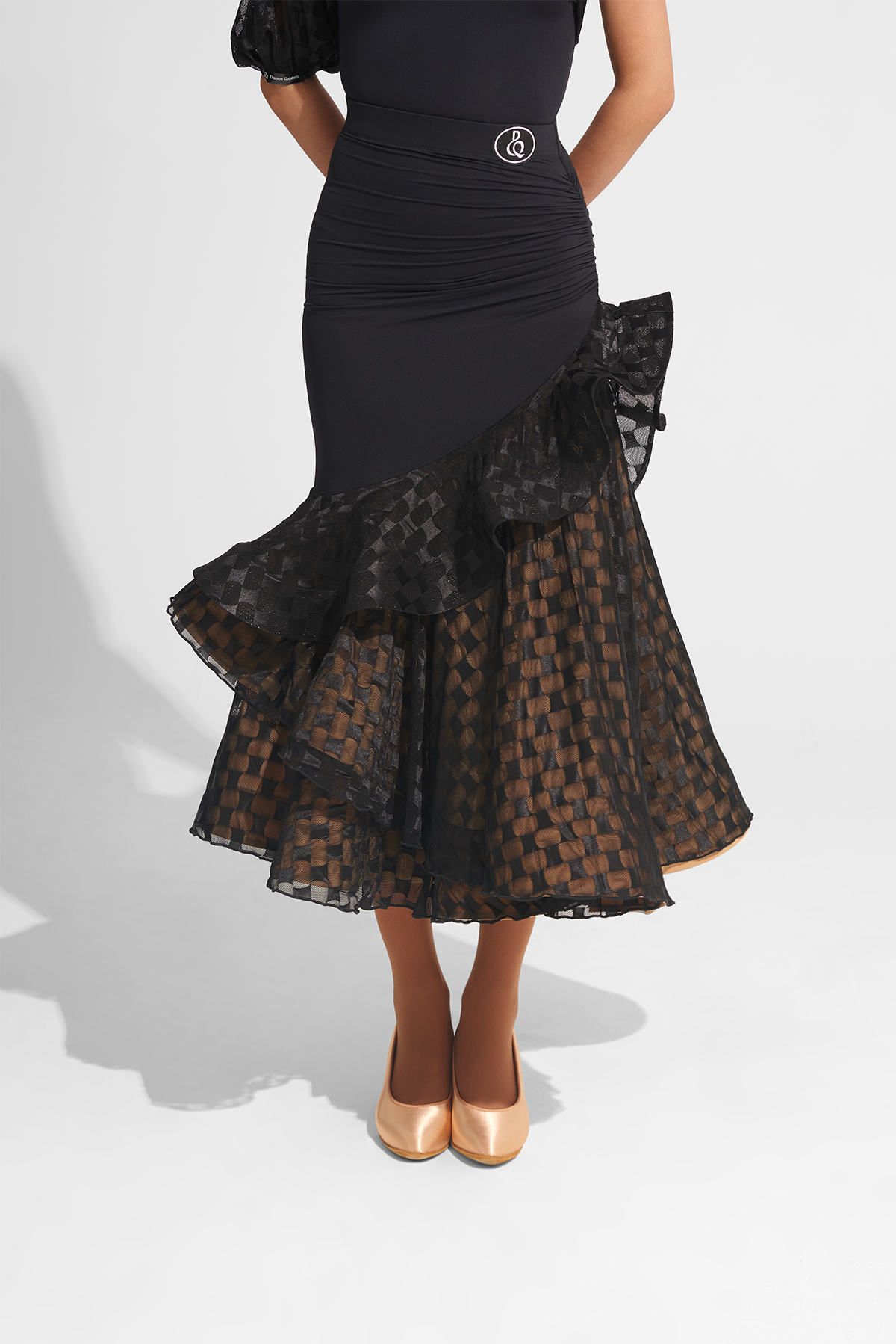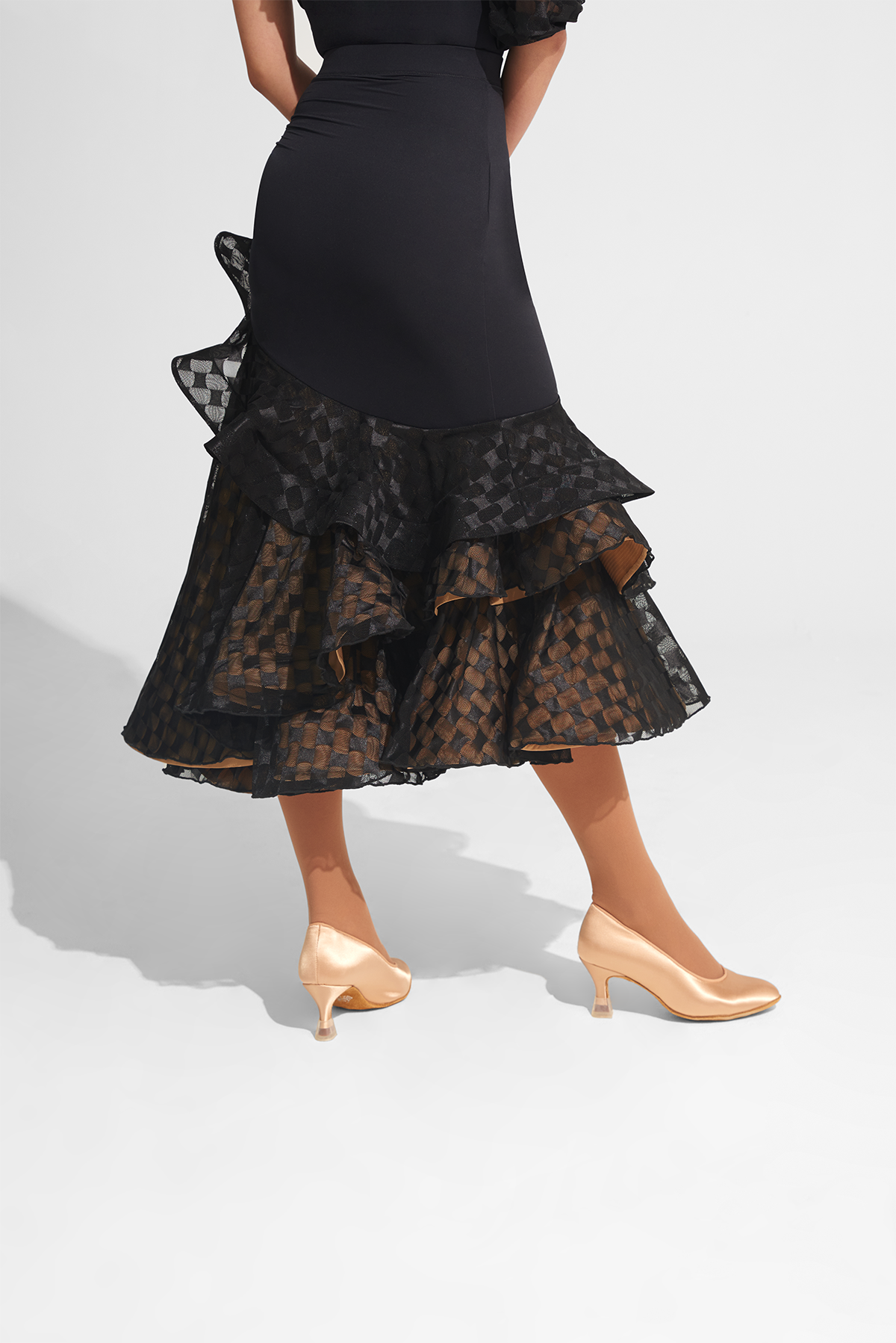 大胆にあしらわれた大きなフリルが抜群に目を惹く人気のボールルームスカートです。